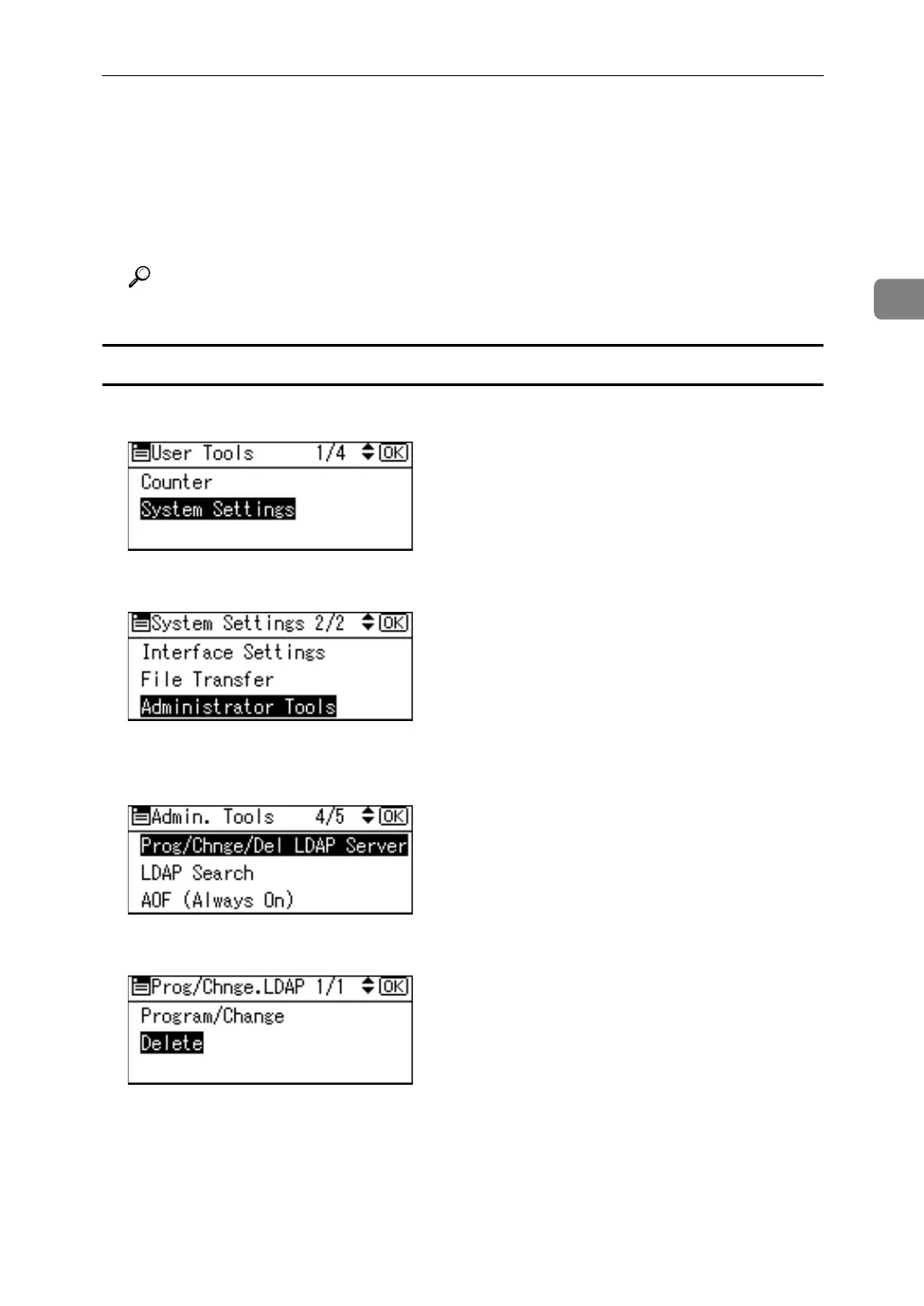 C Select [Prog/Chnge/Del LDAP Server] using {U} or {T}, and then press the {OK}