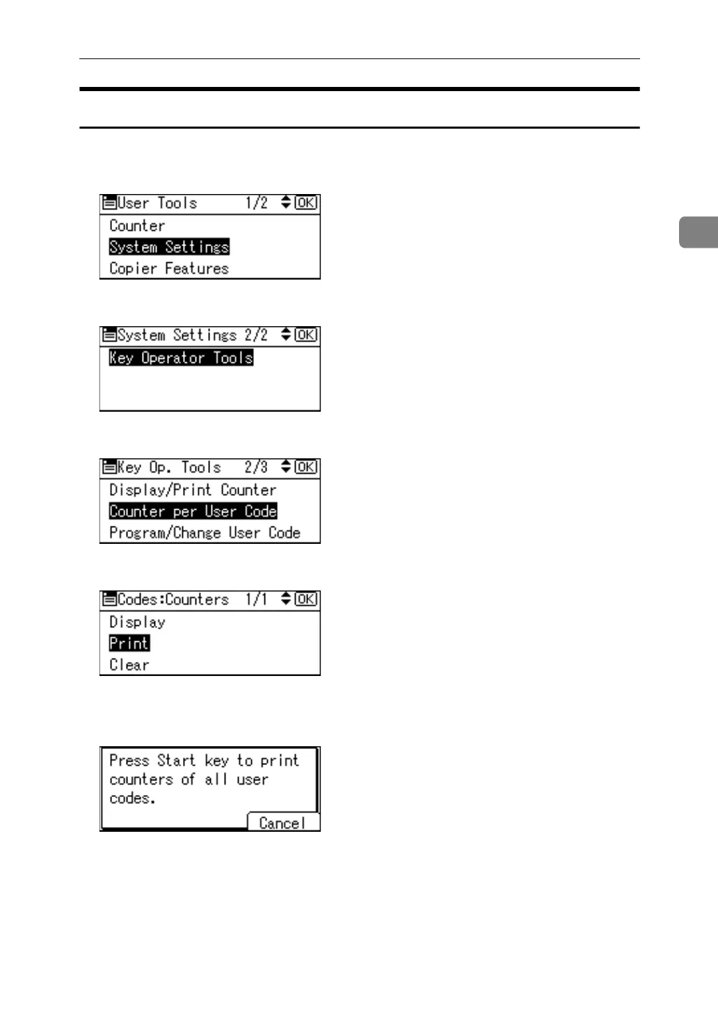 C Select [Counter per User Code] using {U} or {T}, and then press the {OK} key.