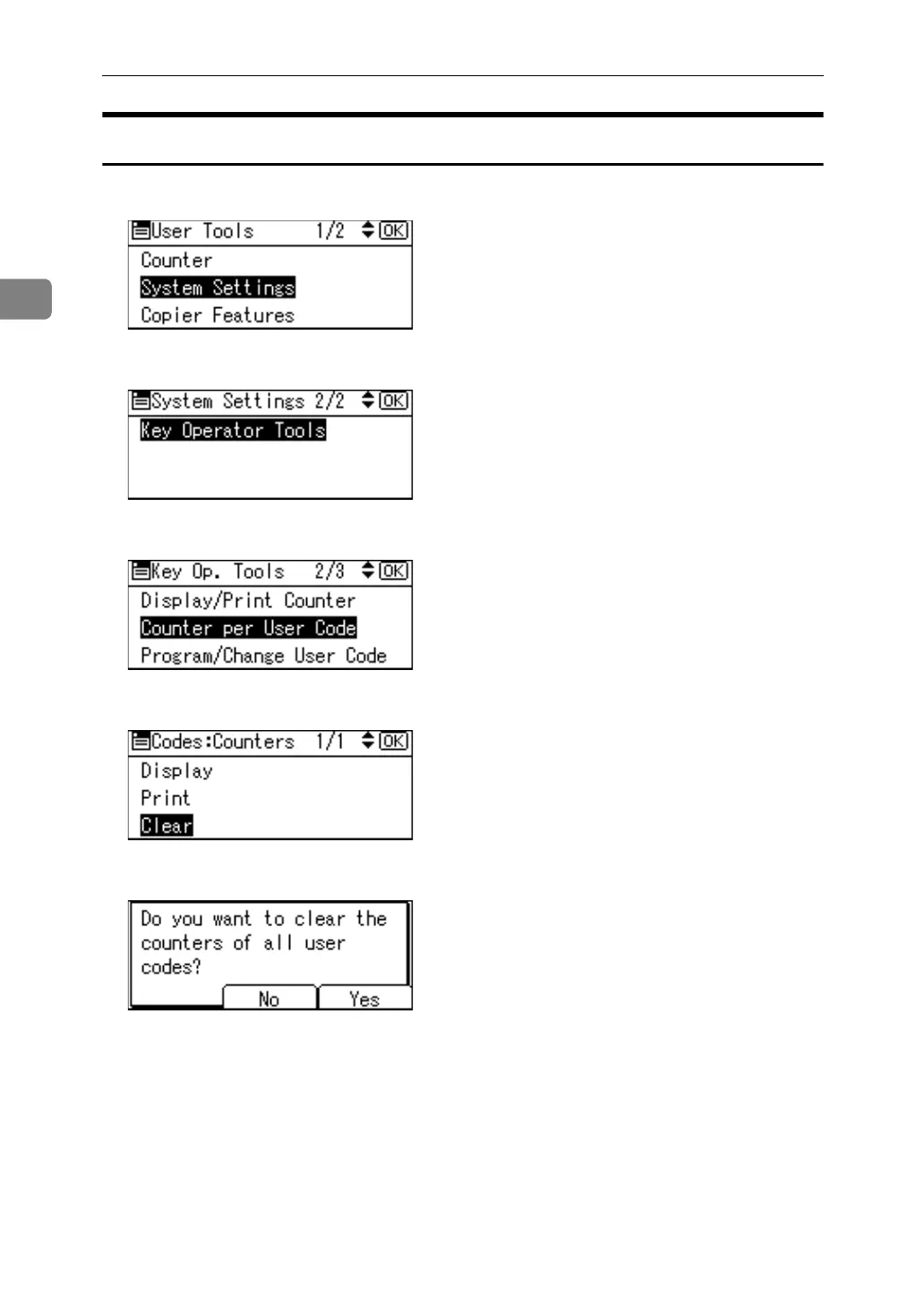 C Select [Counter per User Code] using {U} or {T}, and then press the {OK} key.