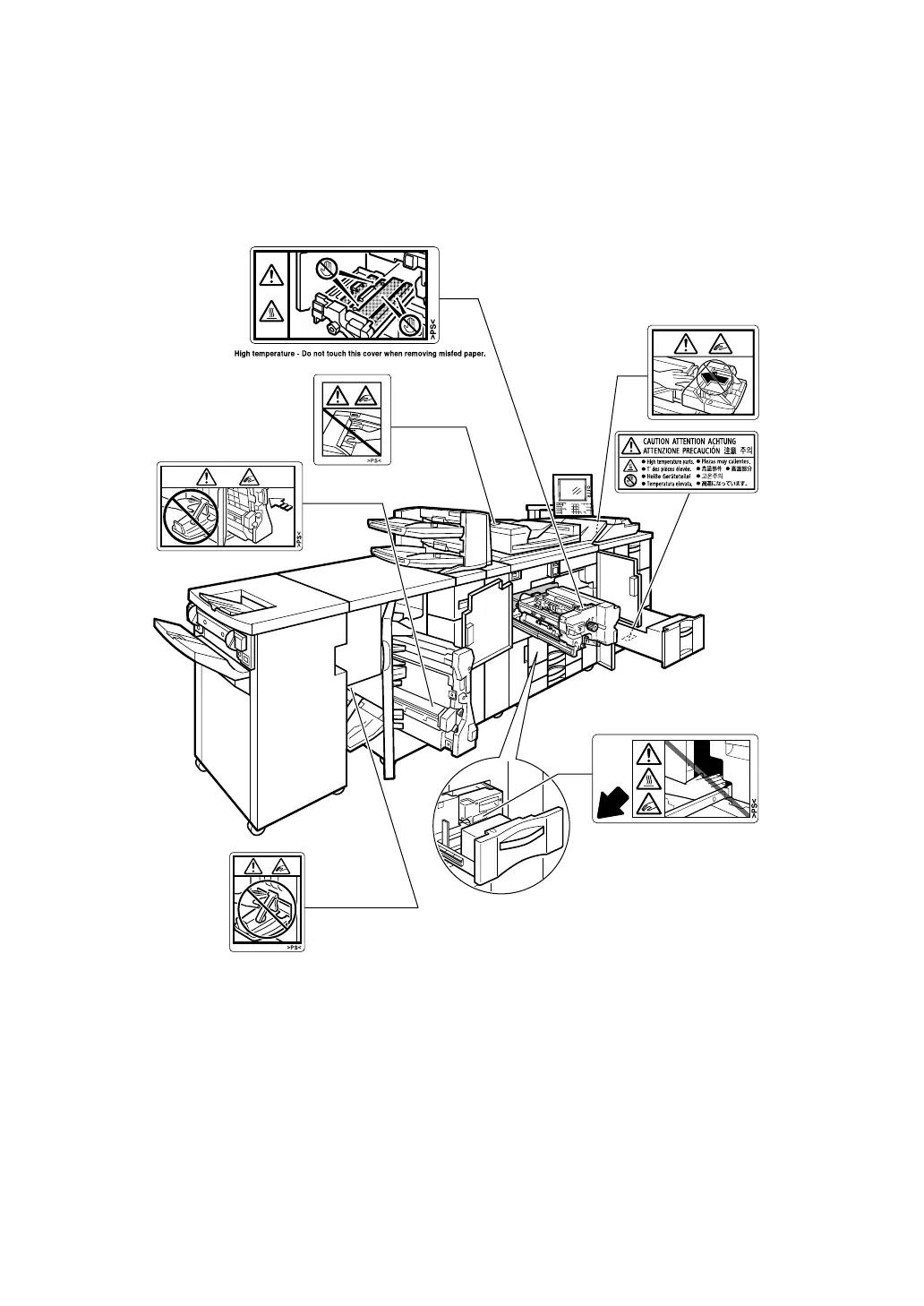 Ricoh MP9000 - Positions of RWARNING and RCAUTION Labels