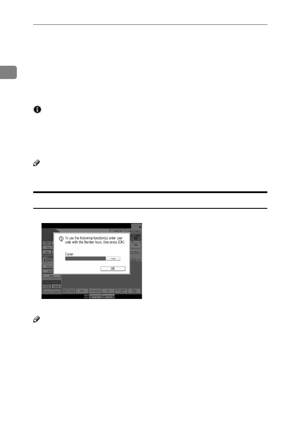 ❒ When User Code Authentication is set, the screen for entering a user code is