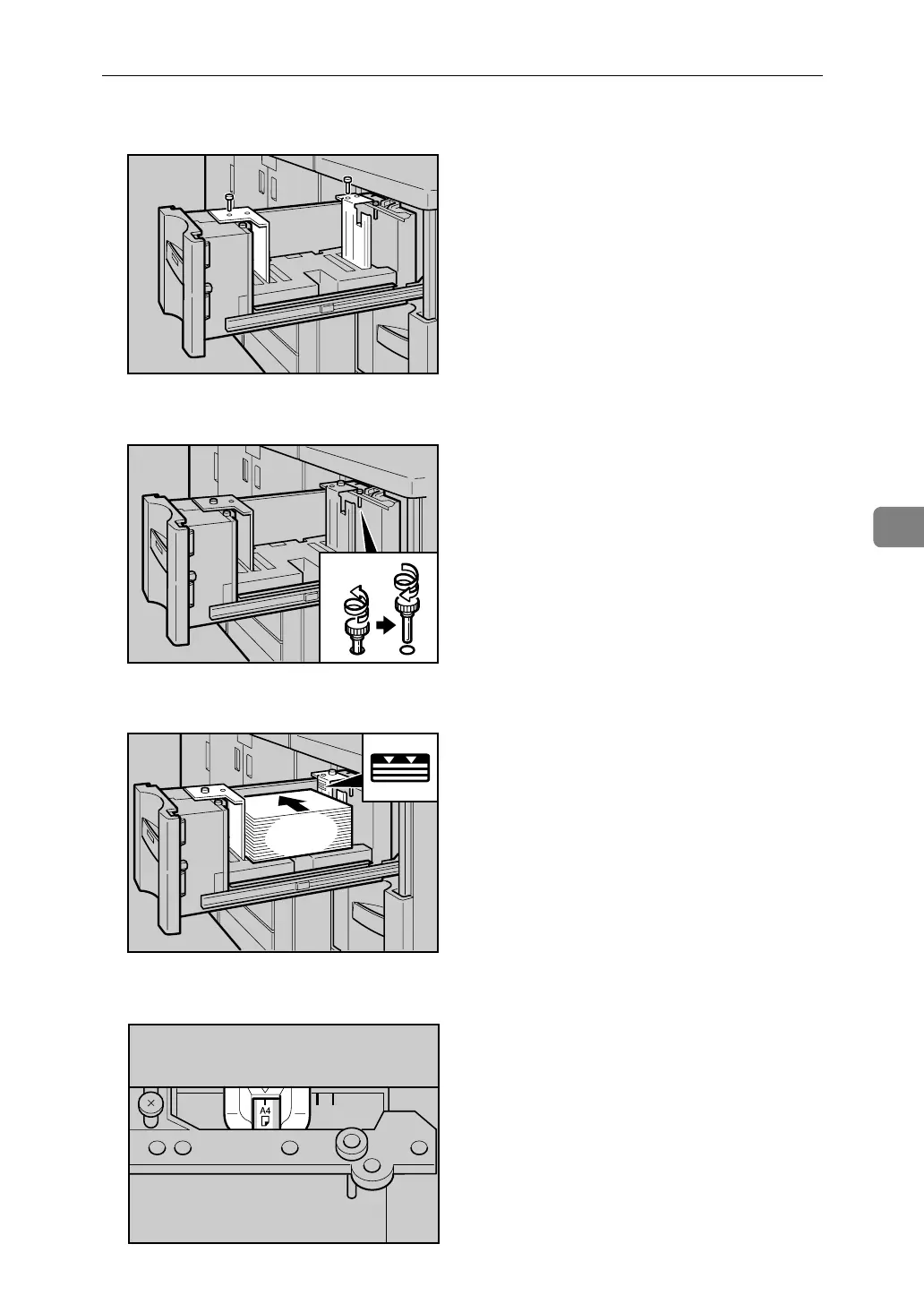 F Square the paper and set it in the tray.