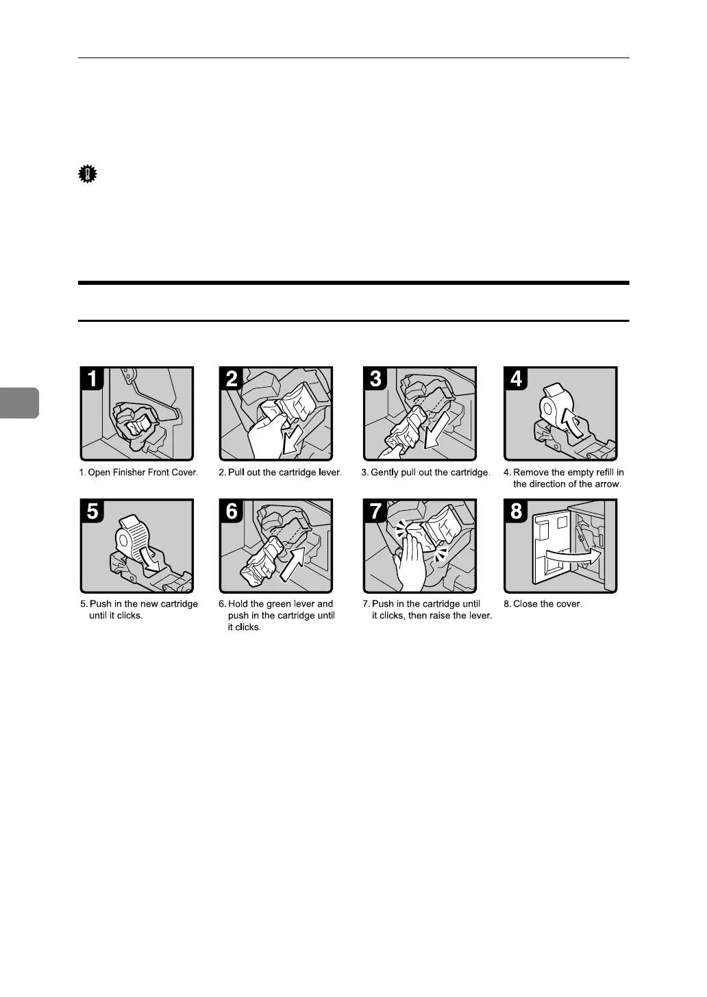 Refill the stapler according to the finisher type. (Check the type if you are un-