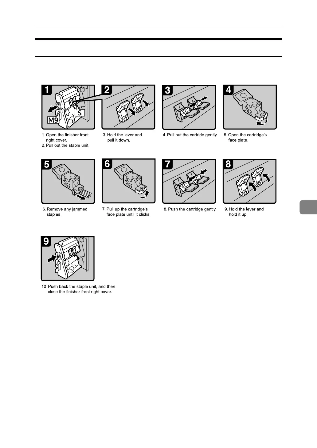 The following procedure explains how to remove jammed staples from the