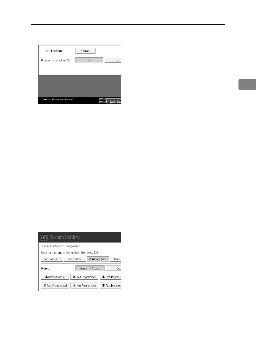 If you do not use secure sockets layer (SSL) for authentication, press [Off].