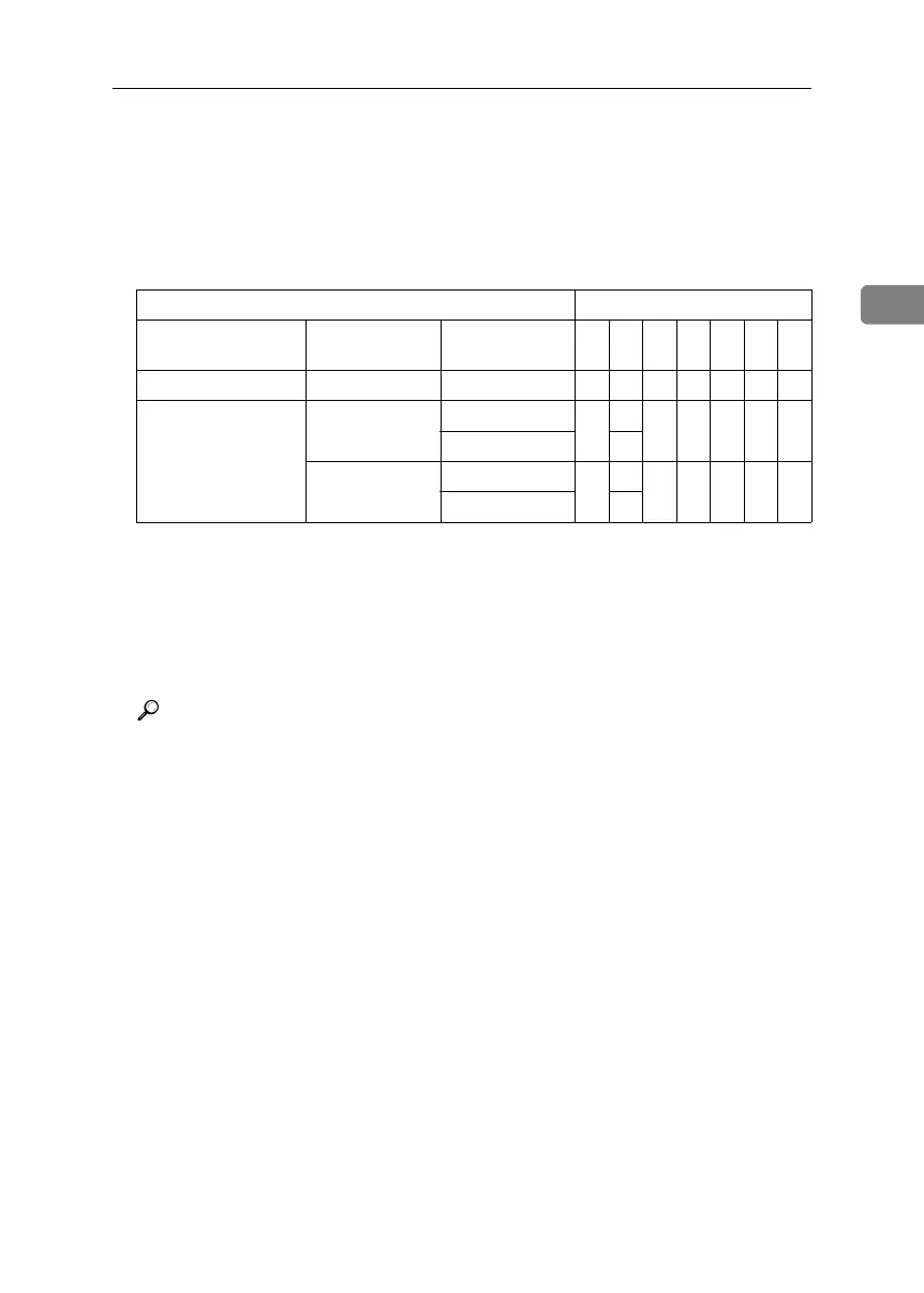❍: Printing is possible if user authentication is successful. If user authentica-