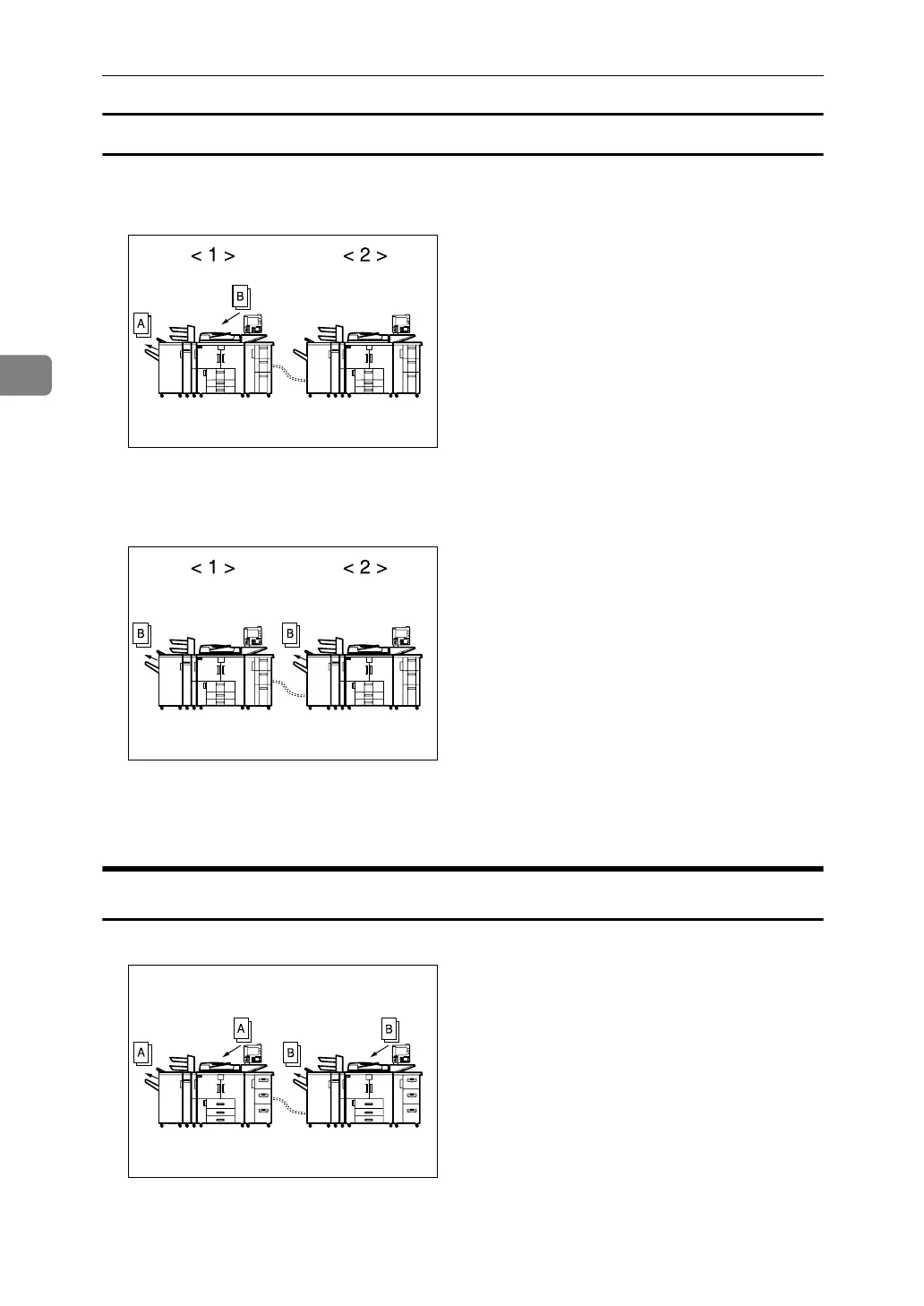 B When machine <1> has finished with Original A, Connect Copy is activat-