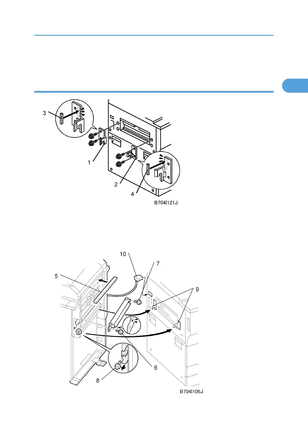 6. With a long screwdriver inserted into the plate cutout [7], tighten the screw to fasten the