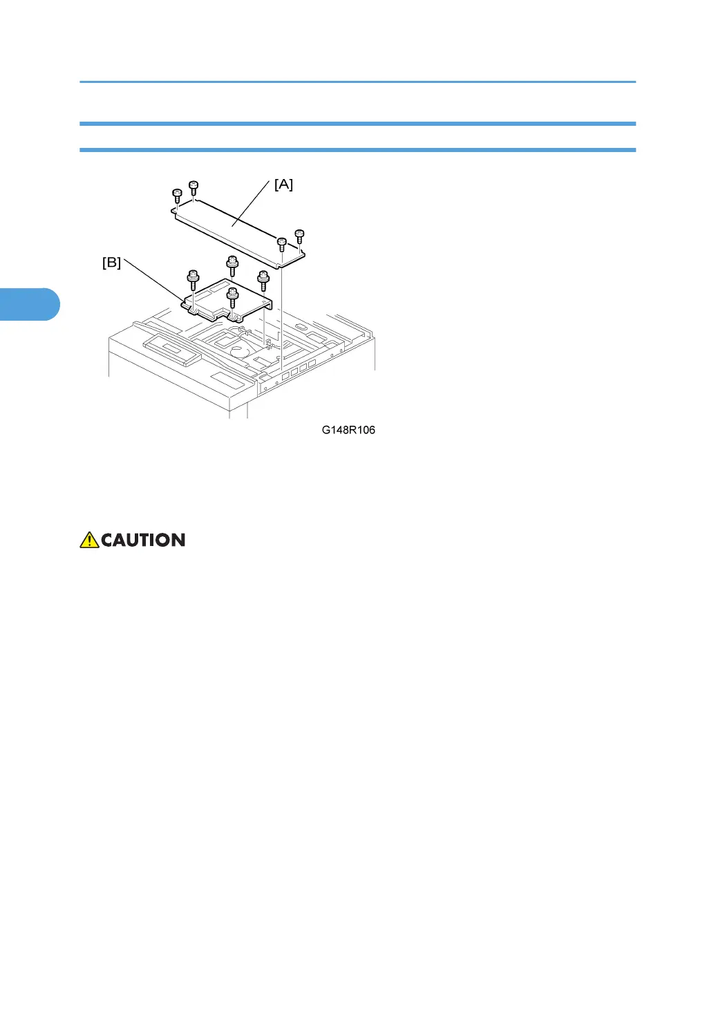 • An accidental static discharge could damage the LDB (Laser Diode Board). Touch a metal surface to