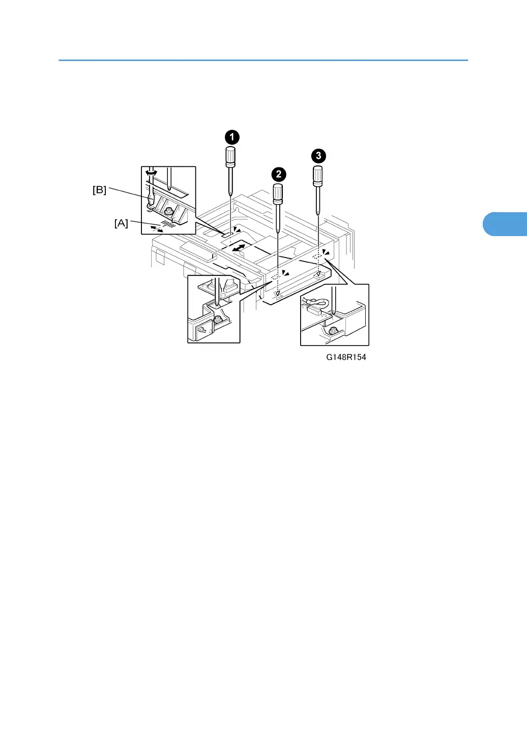 6. While watching the scale [A], use a flathead screwdriver [B] to move the laser exposure