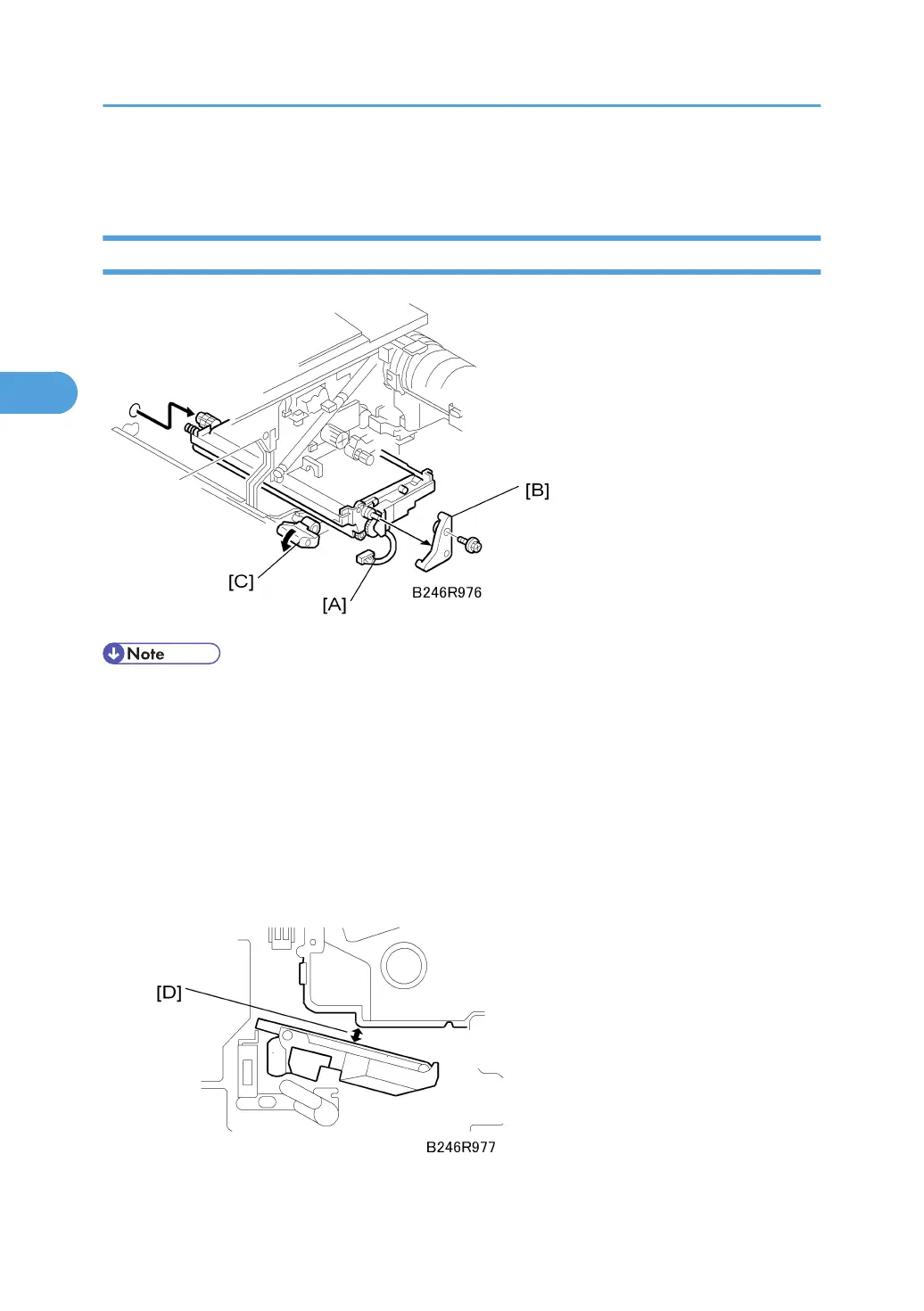 2. Remove the transfer belt unit stay [B] ( x 1).
