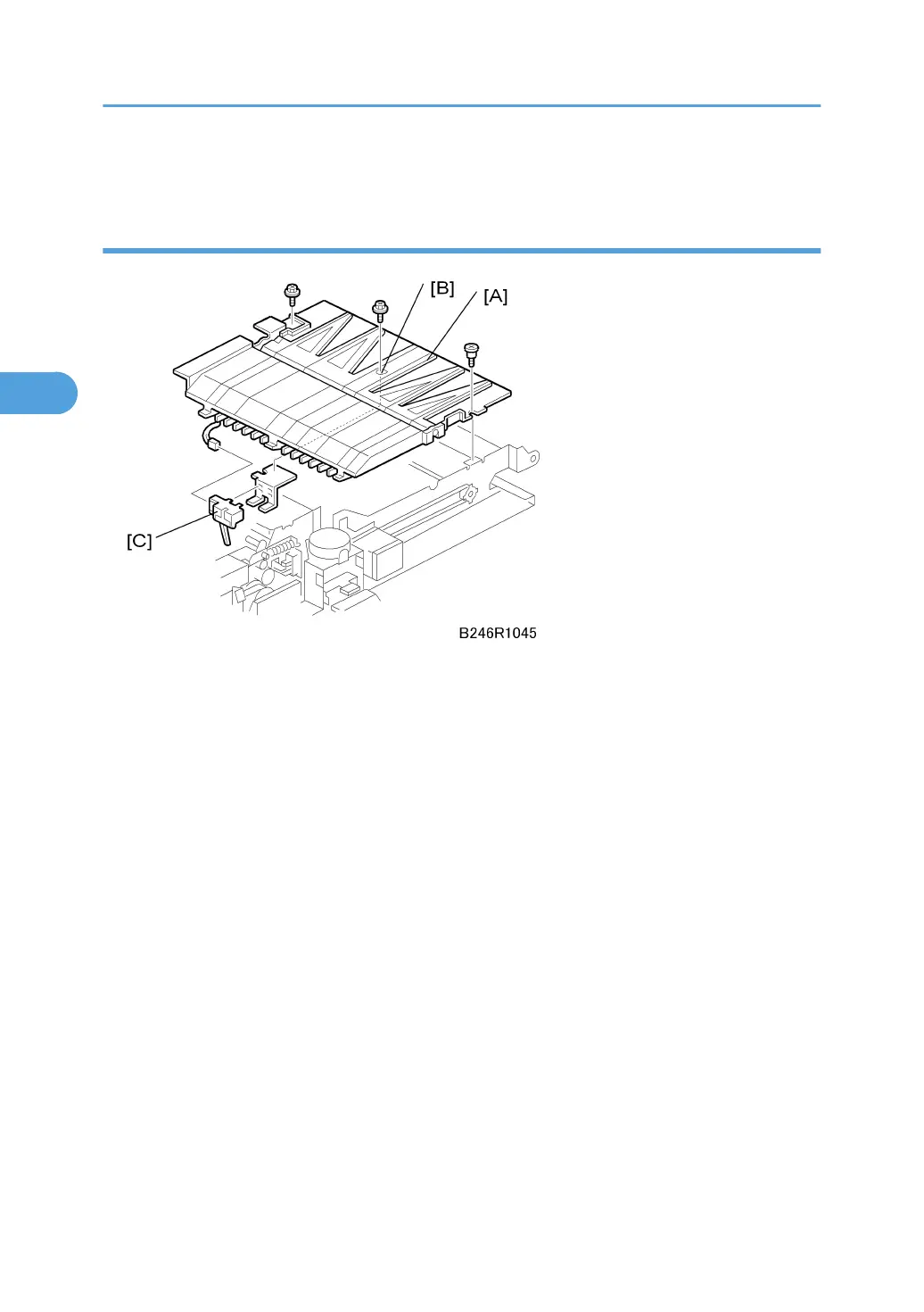 • The front screw is a shoulder screw. Insert the screws in the correct holes when re-attaching.