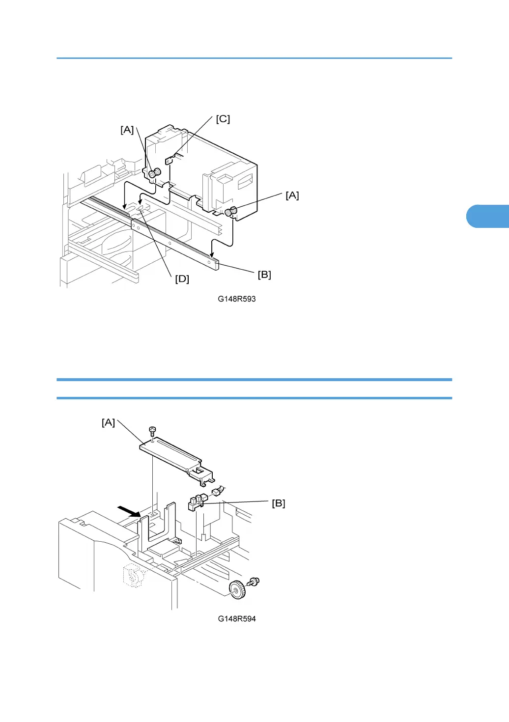 When re-installing the right tandem tray, make sure that the tandem tray stopper [C] is set behind the