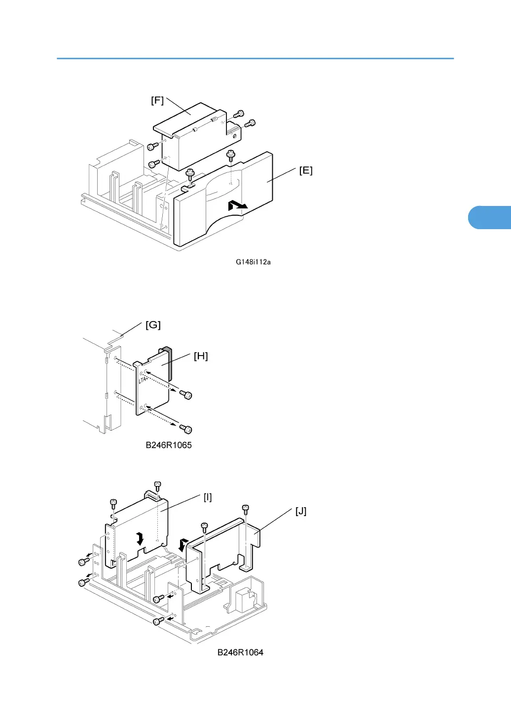 8. Remove the rear side fence [G] ( x 4) and re-position the rear cover [H] ( x 2).