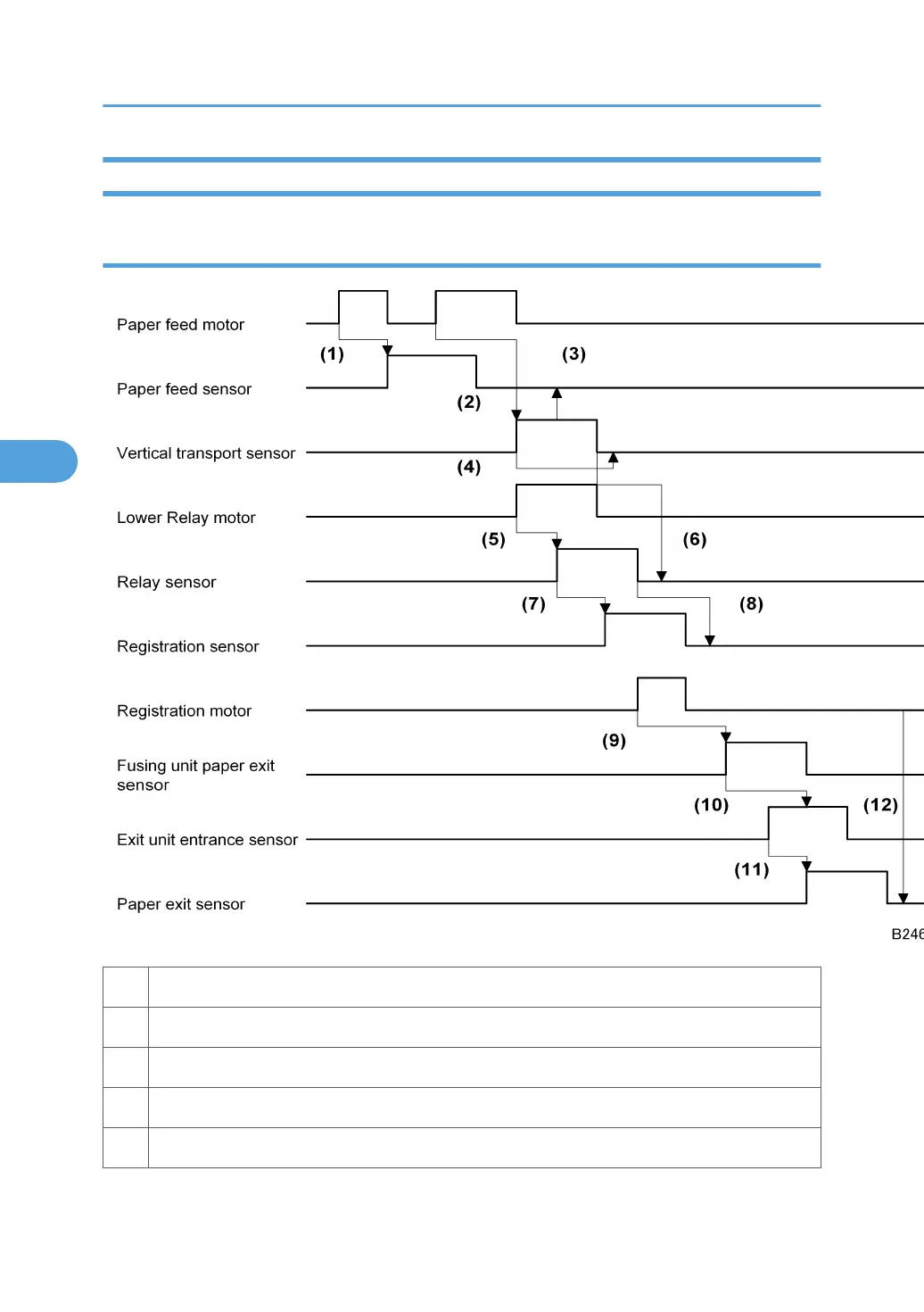 (4): Vertical transport sensor ON > Vertical transport sensor does not switch OFF at the correct time.