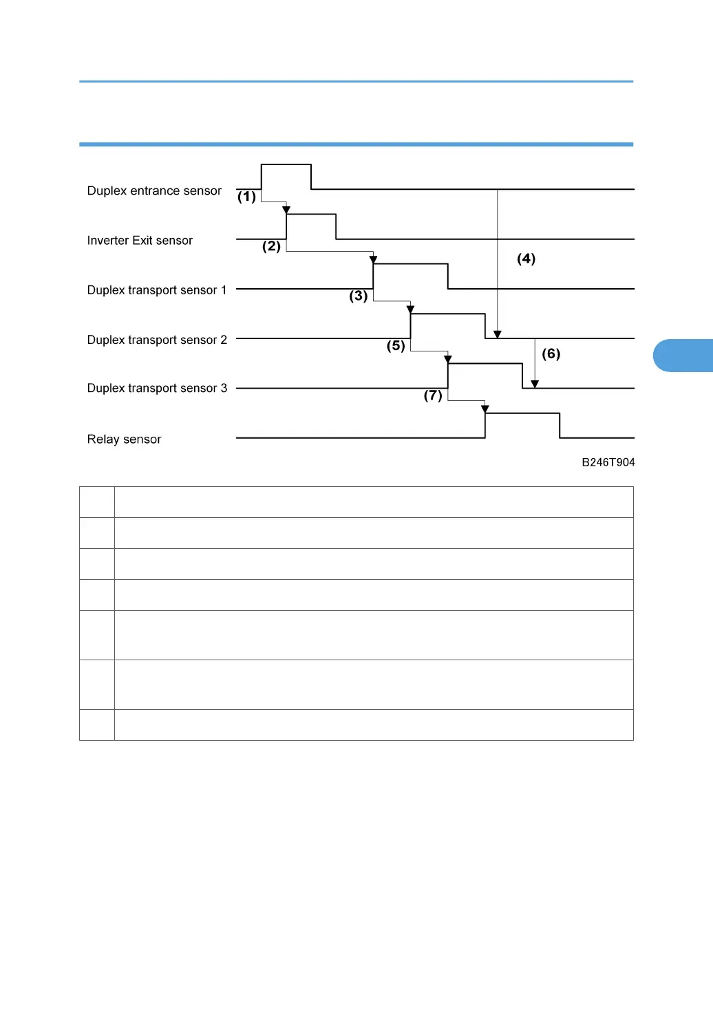 (7): Duplex transport sensor 3 ON > Relay sensor does not switch on at the correct time.