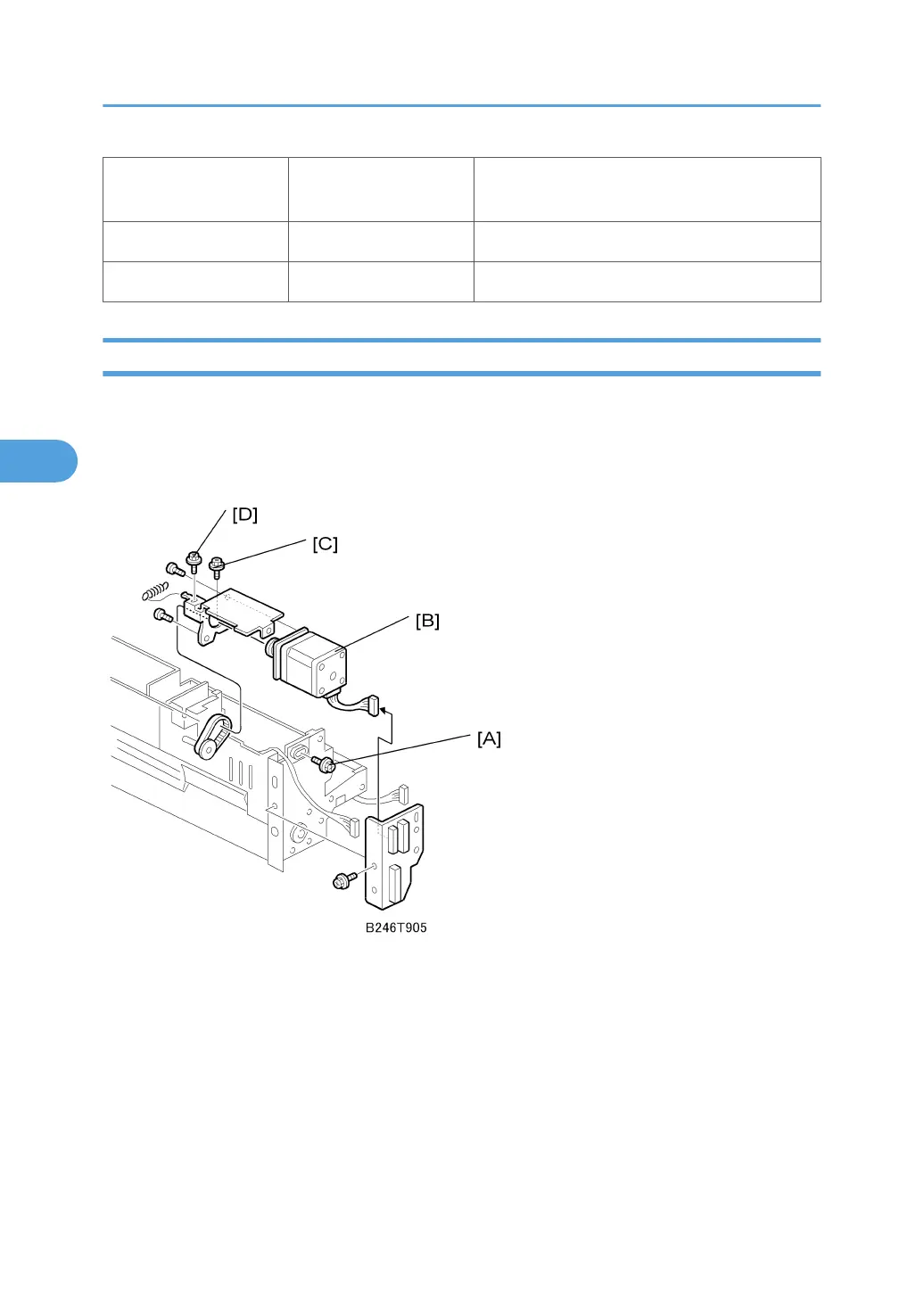 3. Push the motor [B] toward the tray side, then tighten the screw [A].