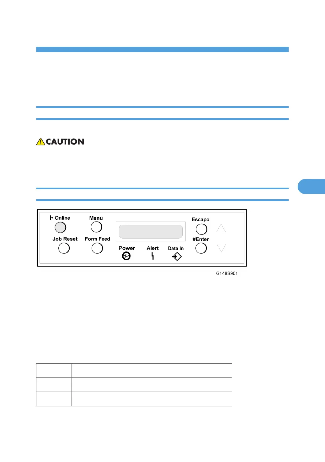 If the printer is off, press and hold down [Online] and [Escape] then switch the printer on. Release the