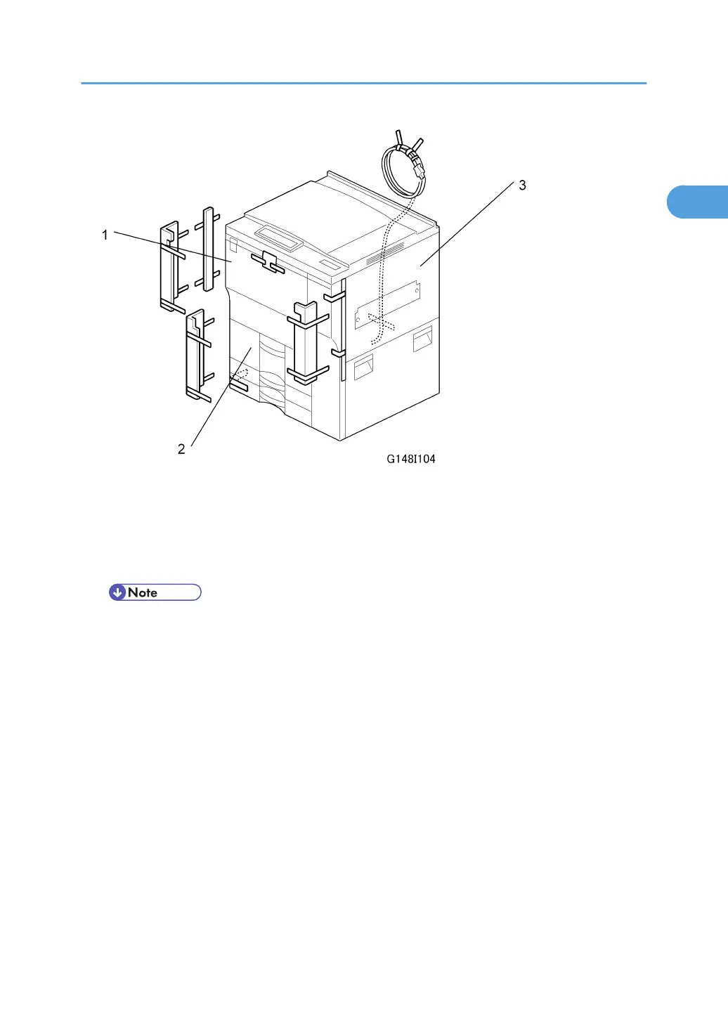 4. Remove the tape from the back [3] of the machine.