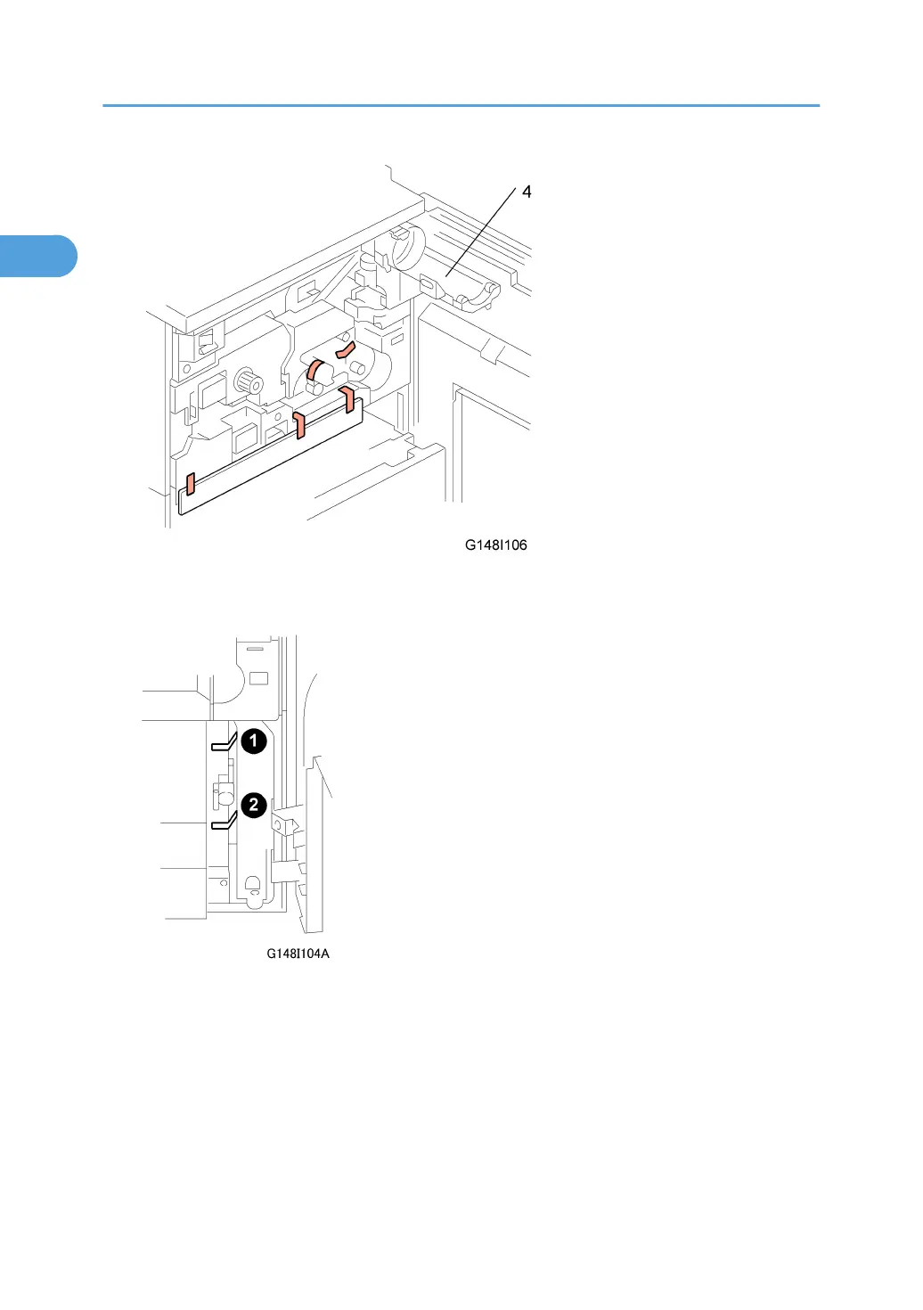 5. Open the front door, open the toner bottle holder [4], then remove all tape and shipping