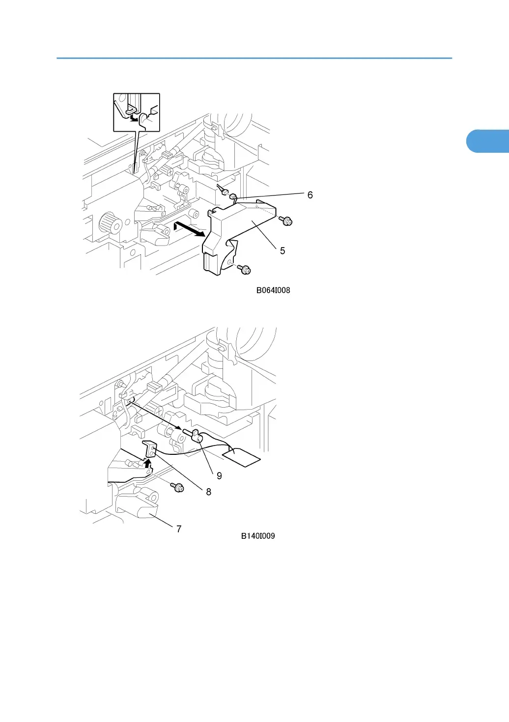 7. Remove the PCU inner cover [5] ( x 2) and disconnect the fan motor [6] ( x 1).