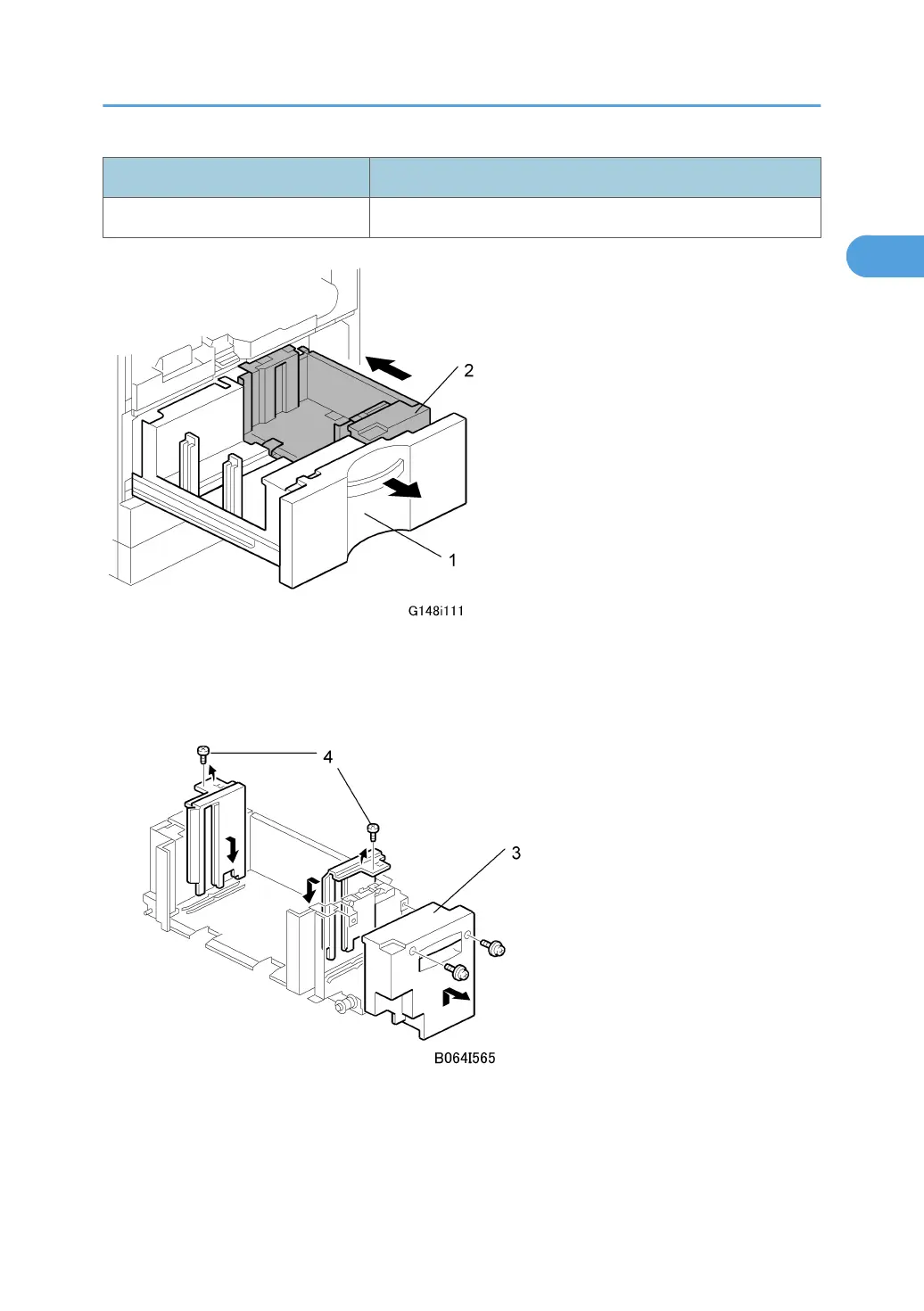 2. Completely pull out the tandem feed tray [1] so that the right tandem tray [2] separates