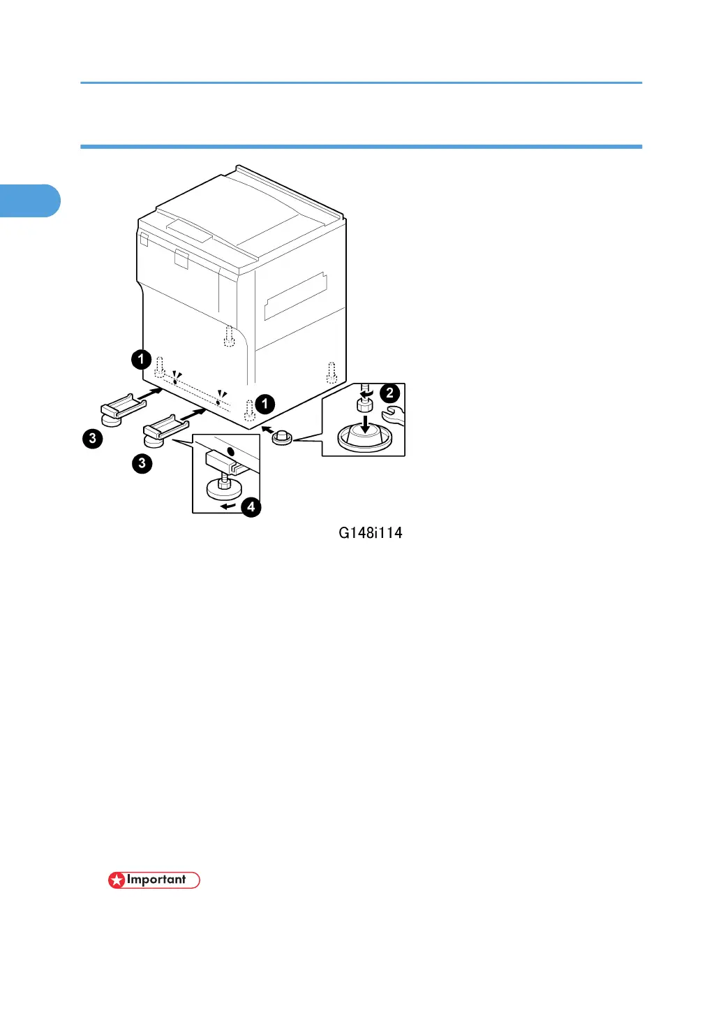 4. Place 2 leveling stoppers ¸ under the paper bank frame. Place one under the 8 mm hole