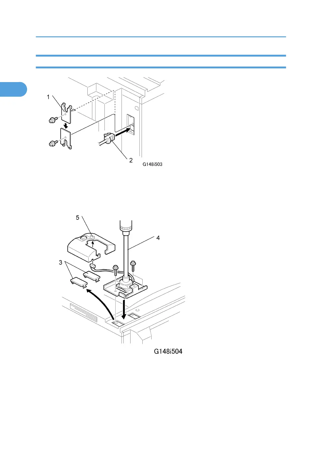 3. Reattach the upper right cover [1] so that the cut-out is facing down as shown.