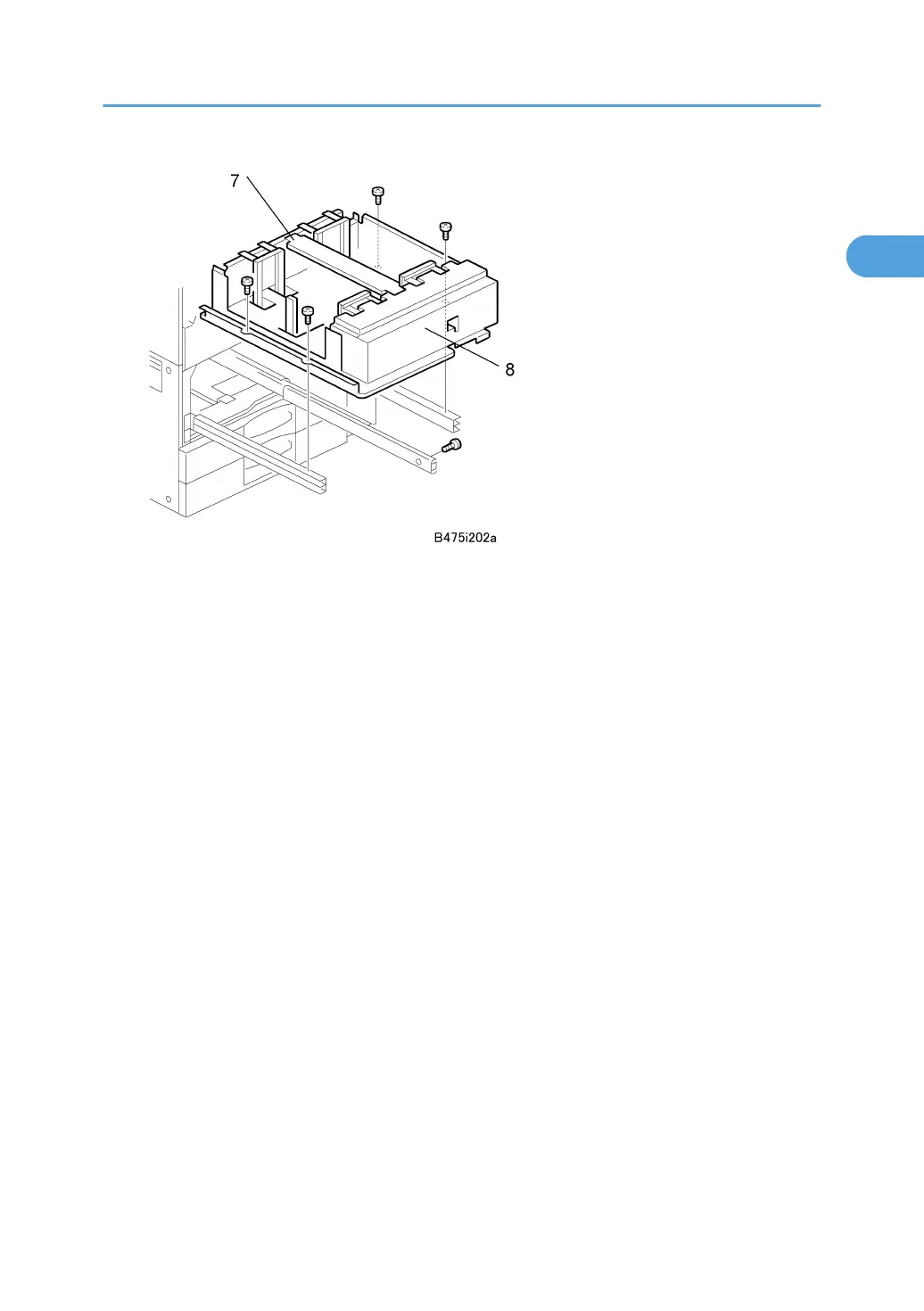 7. Attach the A3/DLT tray [8], using the screws removed earlier.