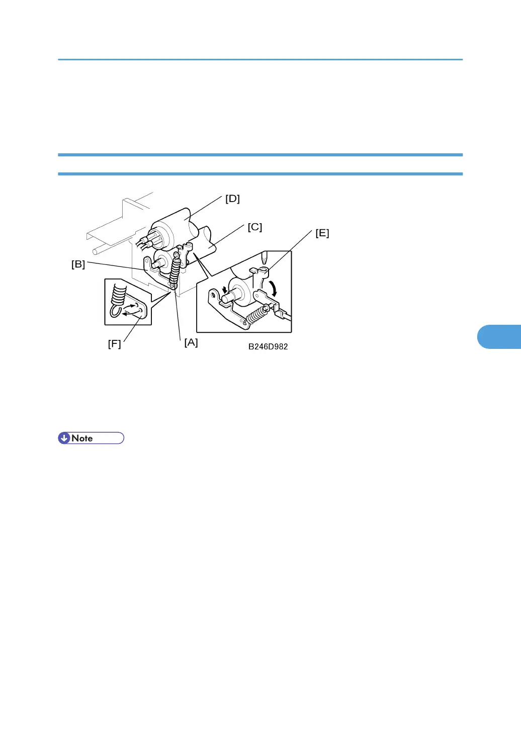Release the springs [E] in order to release the pressure from the rollers for maintenance.