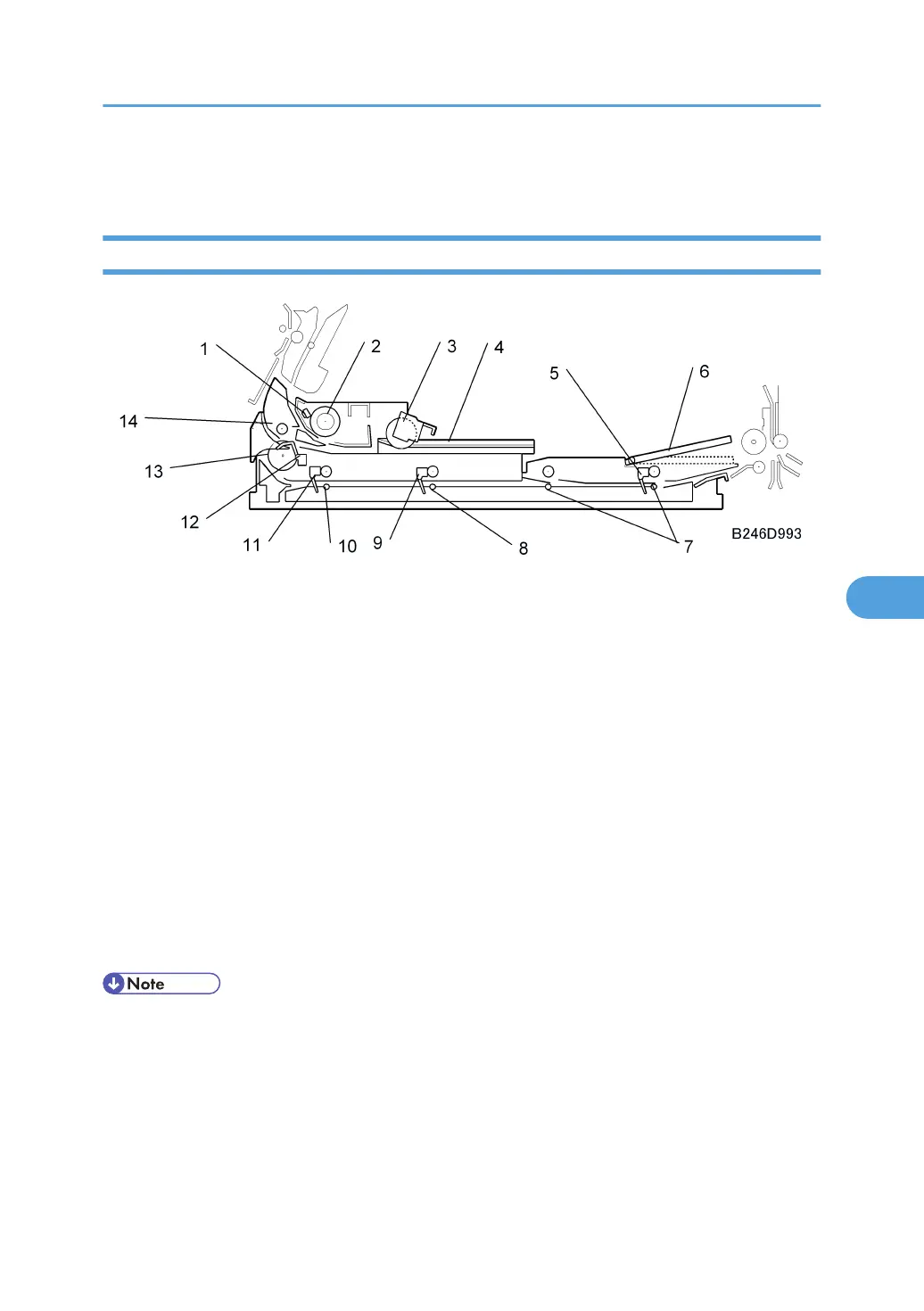 • When the duplex unit is removed, the trailing edge guide plate (6) drops to the horizontal position to