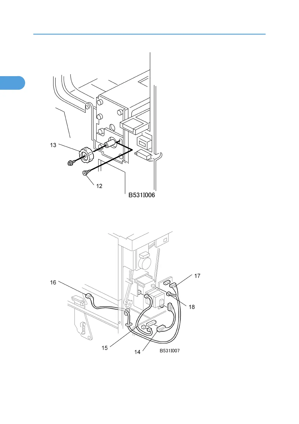 13. Connect the PCB harness connector [14] to CN129 of the finisher PCB and to CN600 of the
