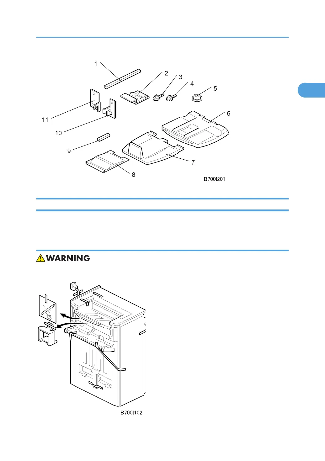 The B700 Booklet Finisher does punching, shifting, corner stapling, and booklet (saddle-stitch) stapling.