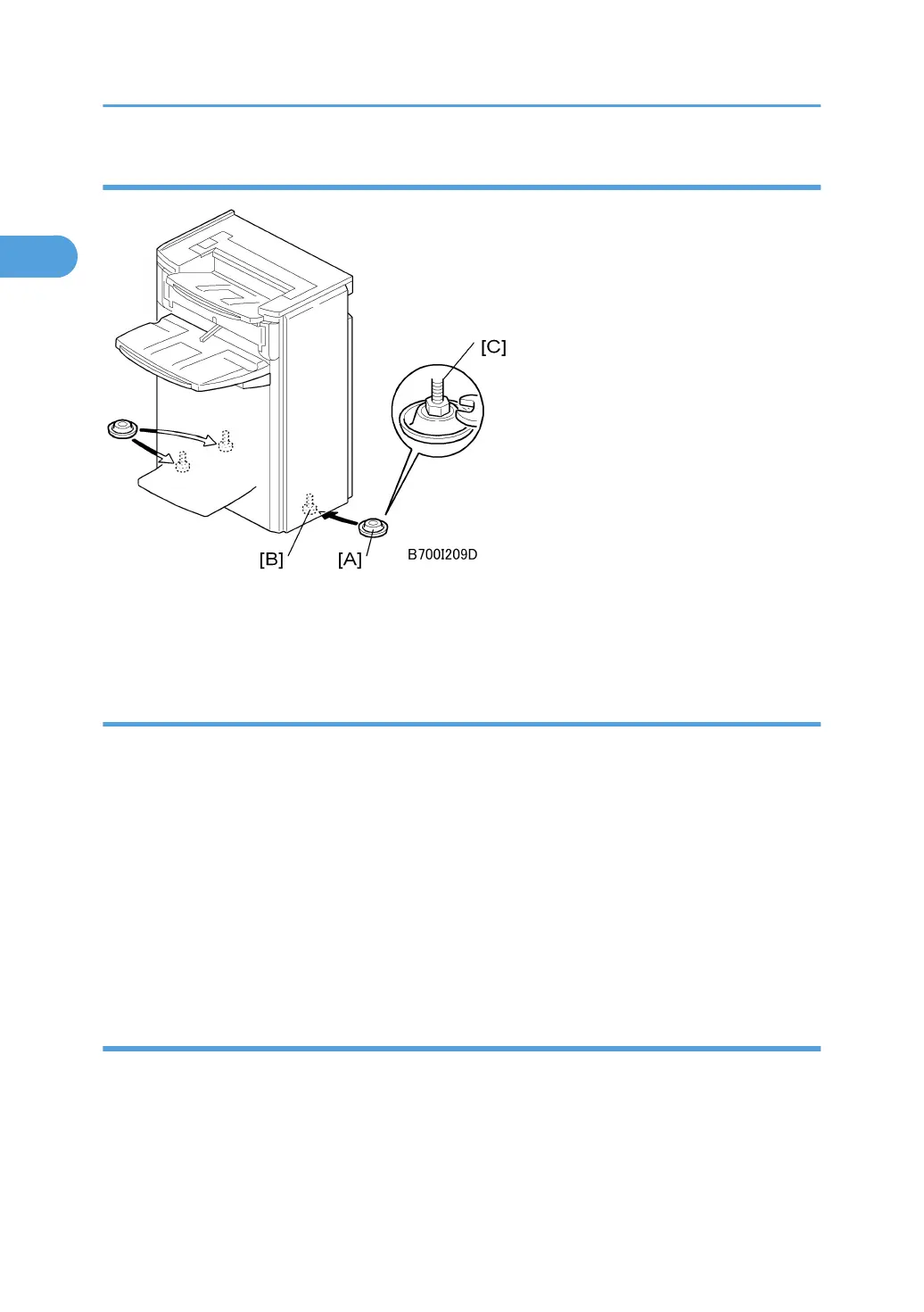 2. Use a wrench to adjust the height of the screws [C] to level the machine.