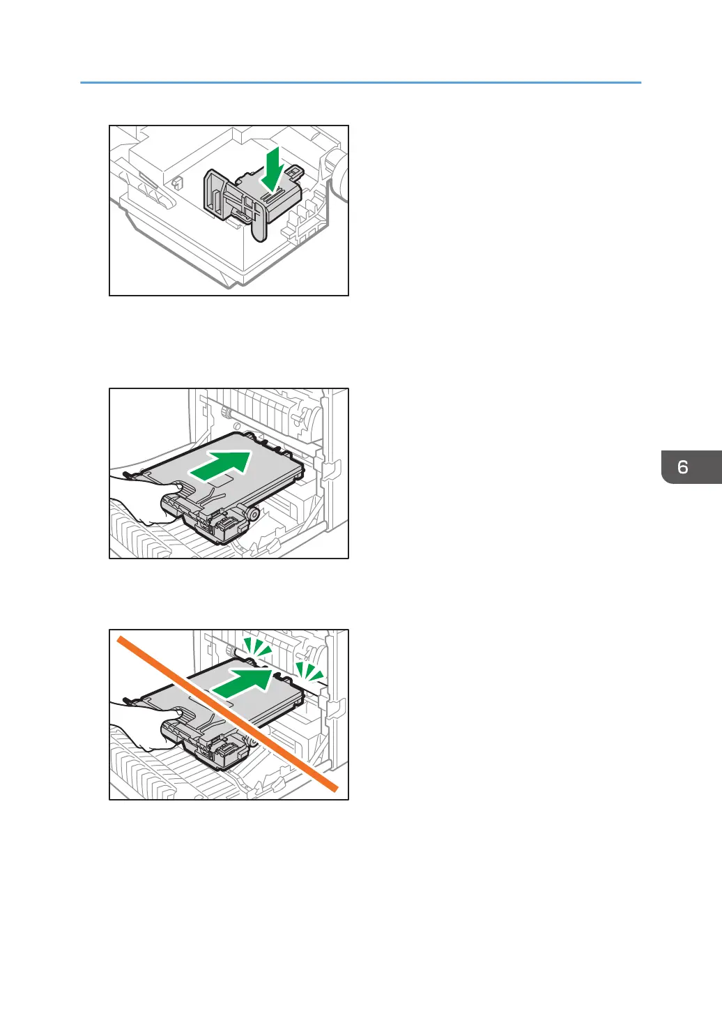 7. Holding the center of the new waste toner bottle, carefully insert it halfway into the