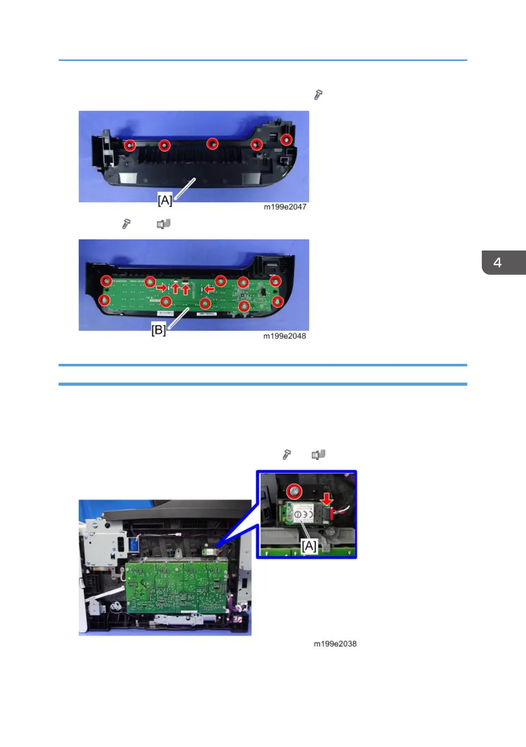 2. Remove the rear cover [A] from the operation panel. ( × 5)