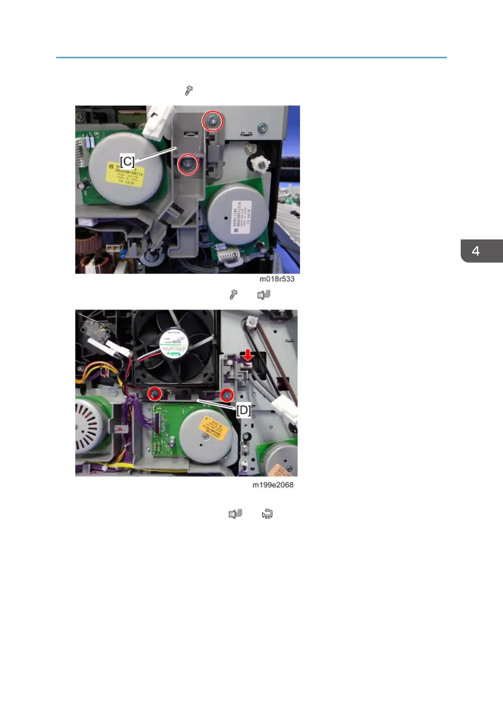 4. Fusing thermistor harness guide [D] ( × 2, × 1)
