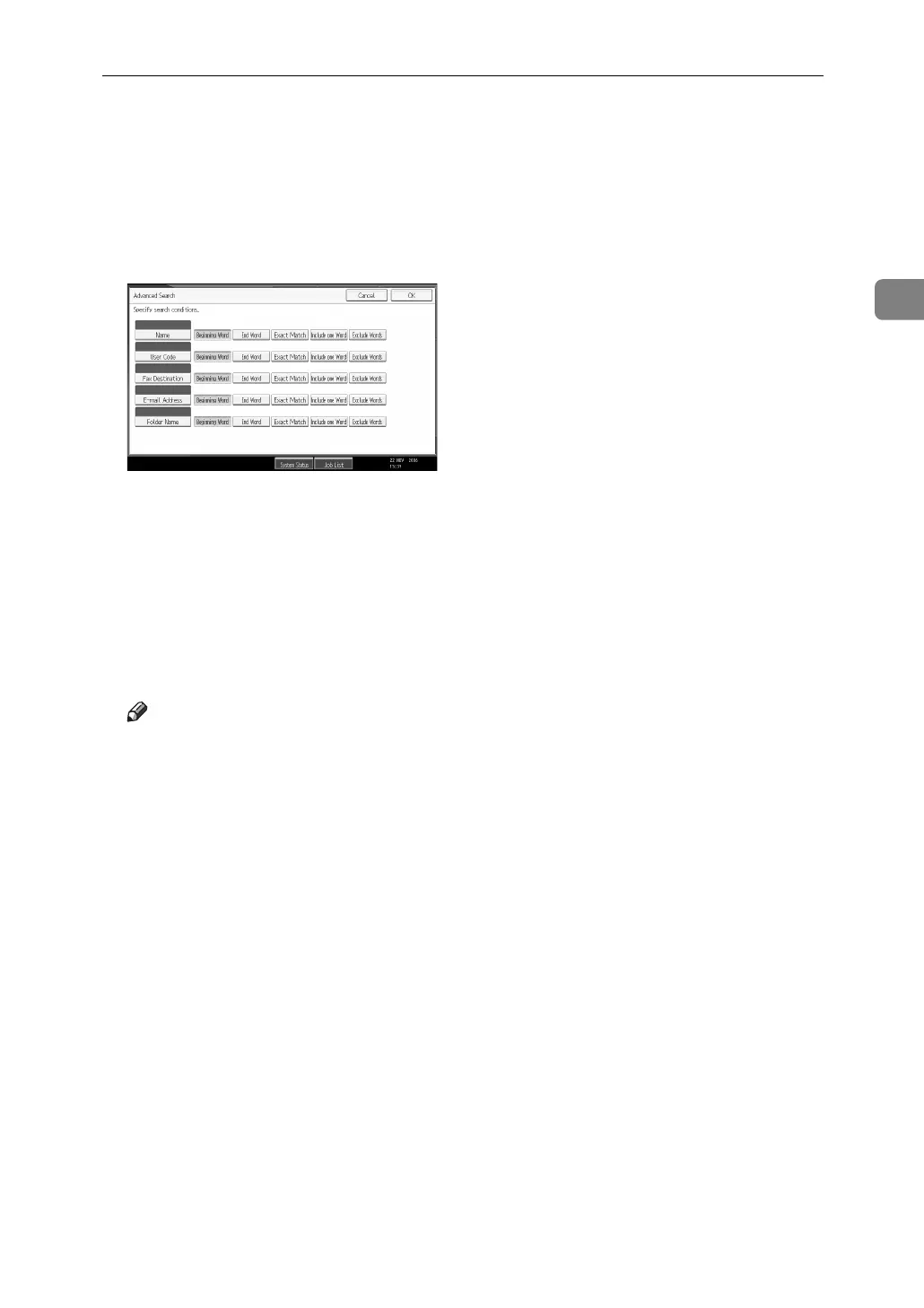 ❒ Search criteria that appear in [Advanced Search], such as [Name], [E-mail Ad-