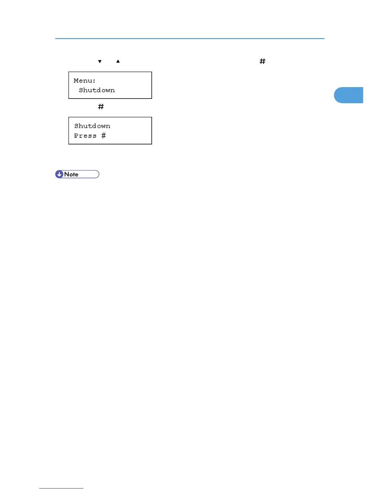 2. Press the [ ] or [ ] key to display [Shutdown], and then press the [ Enter] key.