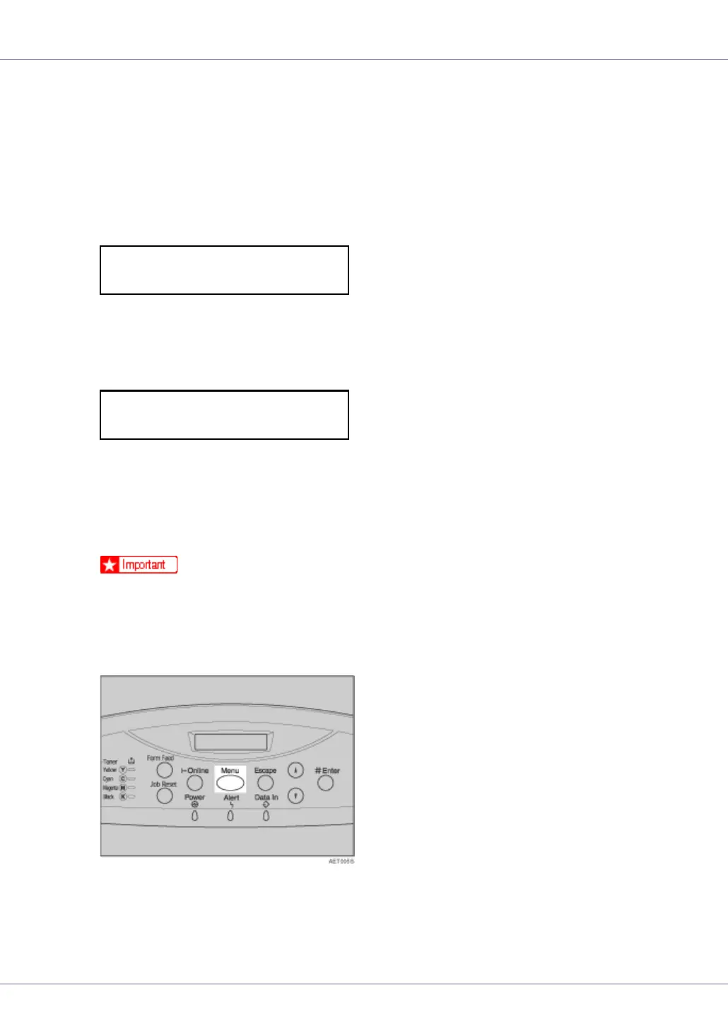 H Press the {U} or {T} key to display “Paper Input”, and then press the {#