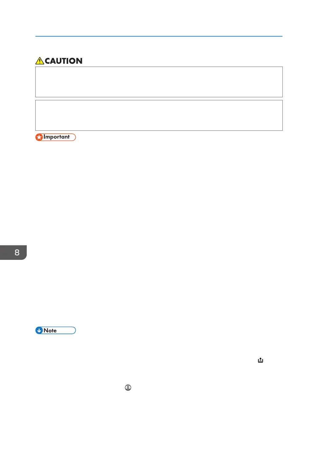 • When replacing a toner or waste toner container or consumables with toner, make sure that the