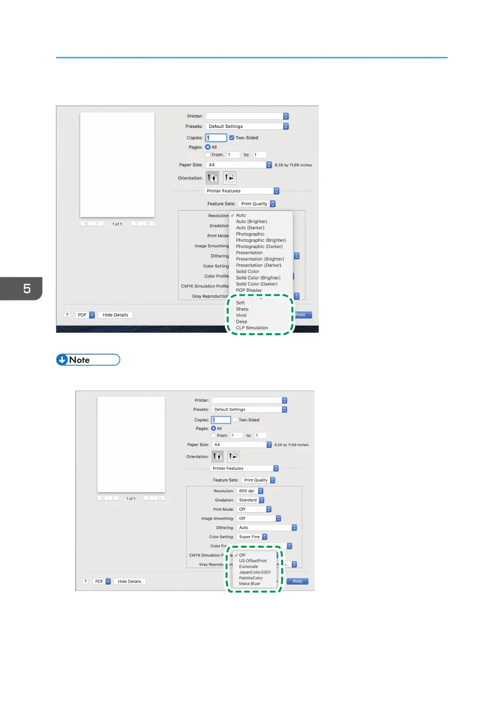 To print a CMYK image, select an item from the CMYK simulation profile.