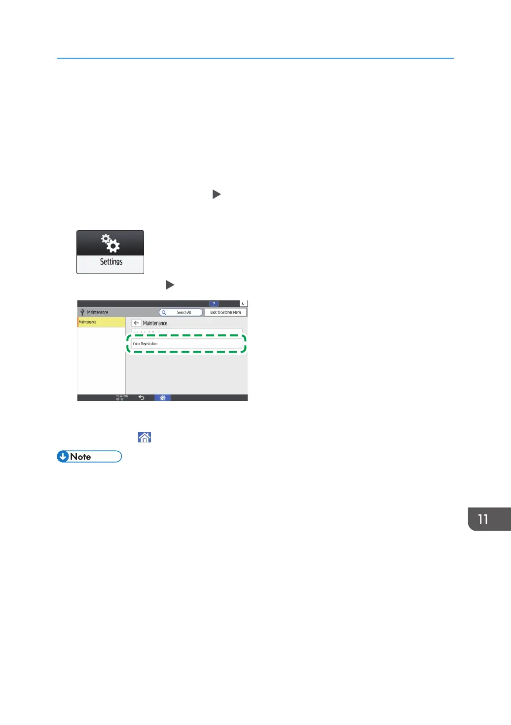 repeatedly. Execute [Color Registration] to perform adjustment. The adjustment process takes
