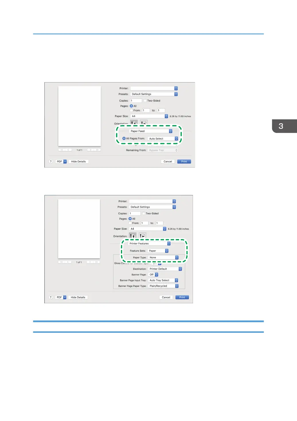 2. On the [Printer Features] menu, set [Feature Sets] to [Paper], and then set [Paper Type] to
