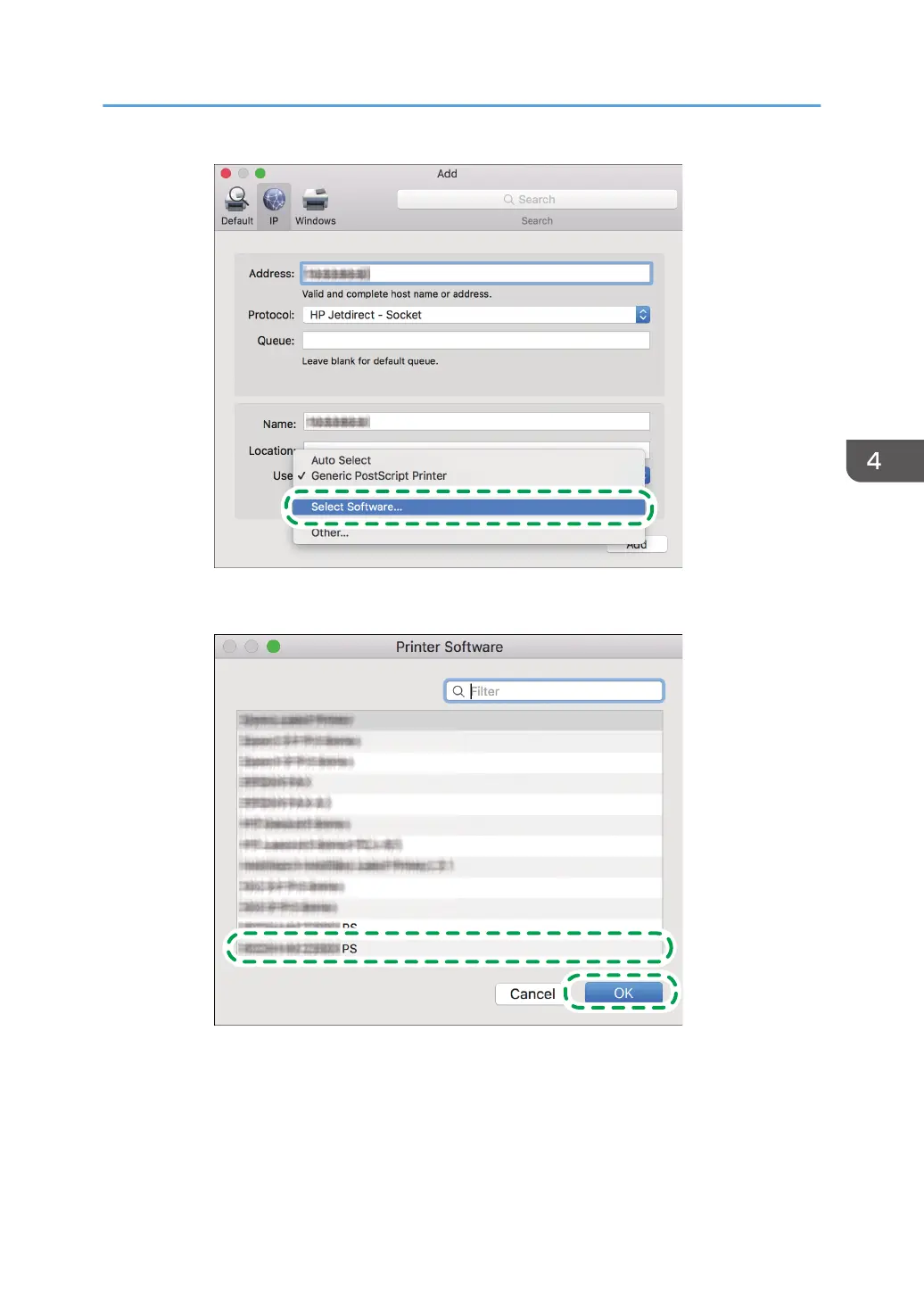 2. Select the machine on the "Printer Software" screen, and then click [OK].