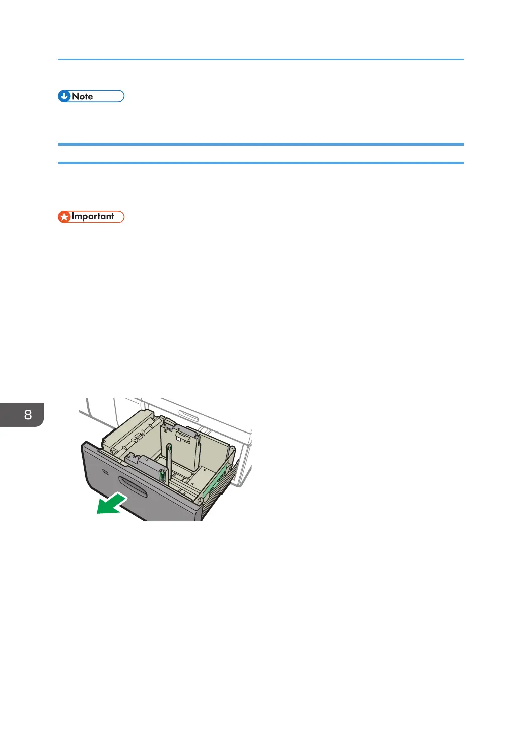 1. Check that paper in the paper tray is not being used, and then pull the tray carefully out