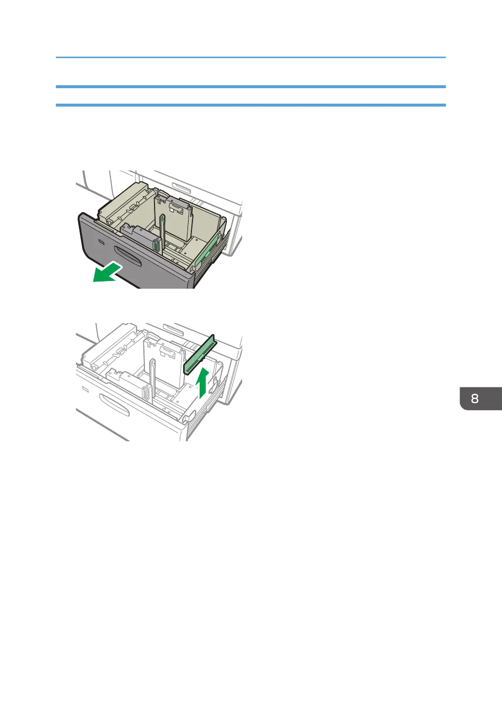 Take out the tab fence from the pocket on the right-hand side of the paper tray.