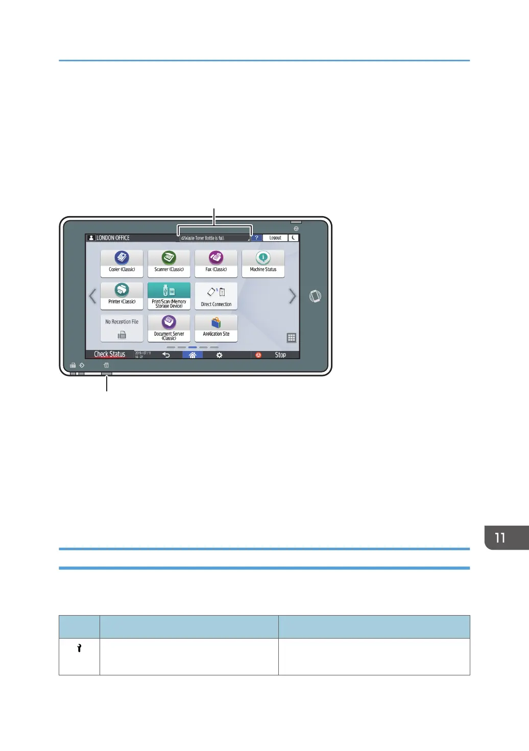 The machine notifies you of the machine condition or status of an application with the [Check Status]