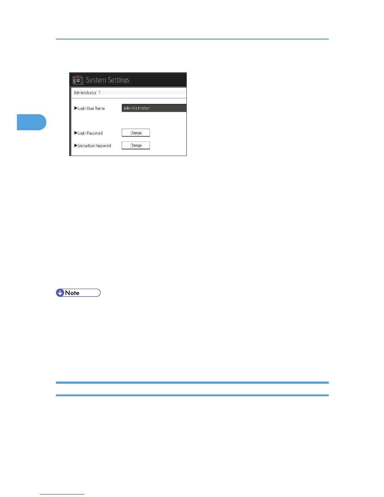 • Administrator authentication can also be specified via Web Image Monitor. For details, see Web