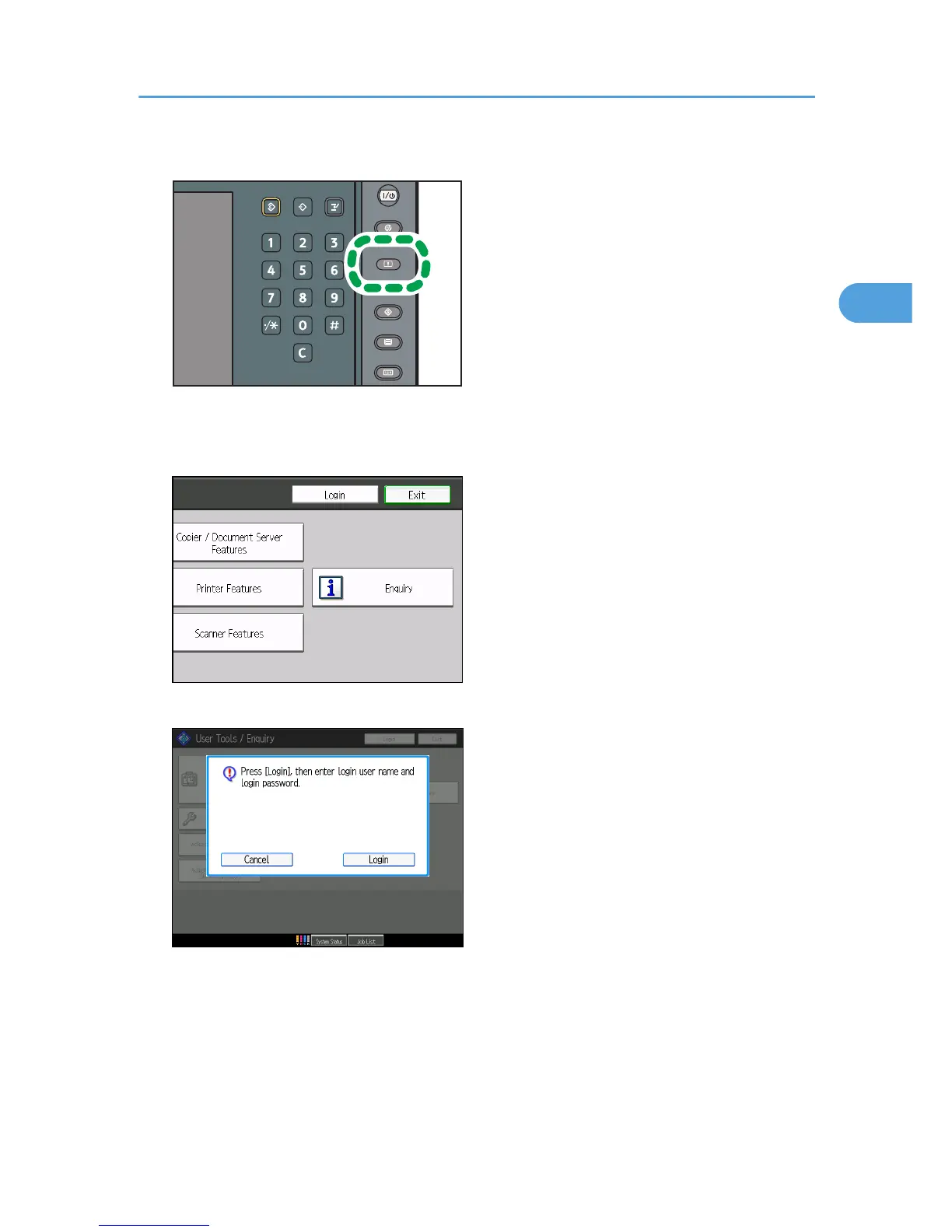 The login screen can also be made to appear by pressing [Login] in the User Tools menu.